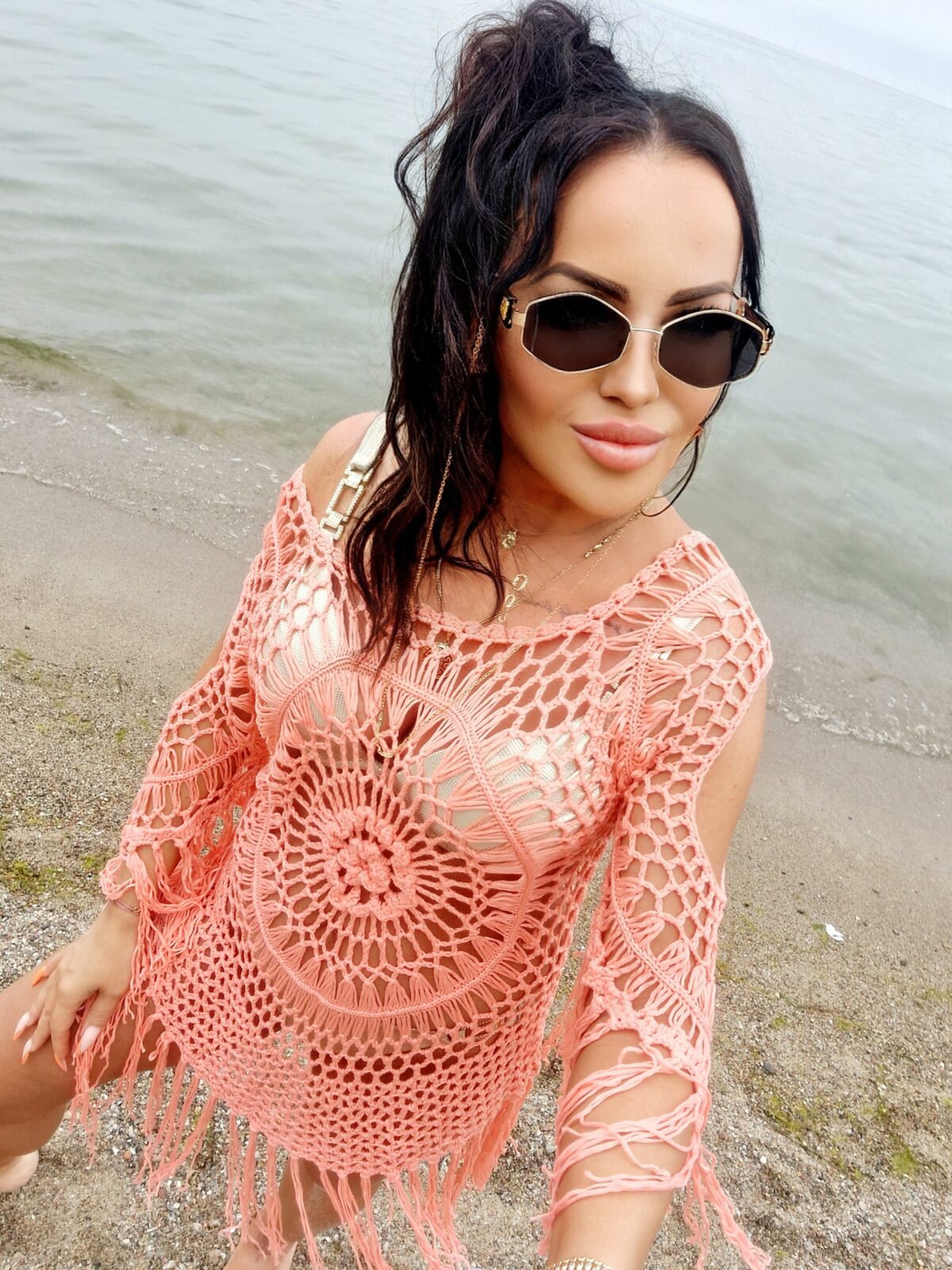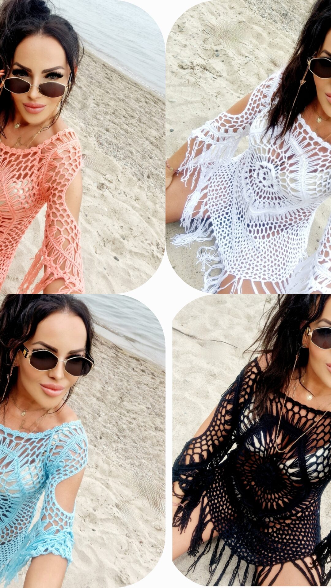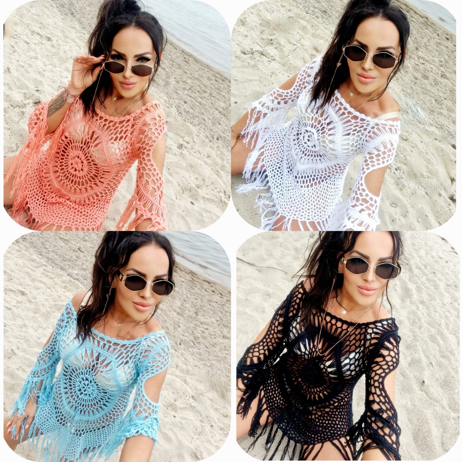 Ażurowa Narzuta Plażowa z Frędzlami
