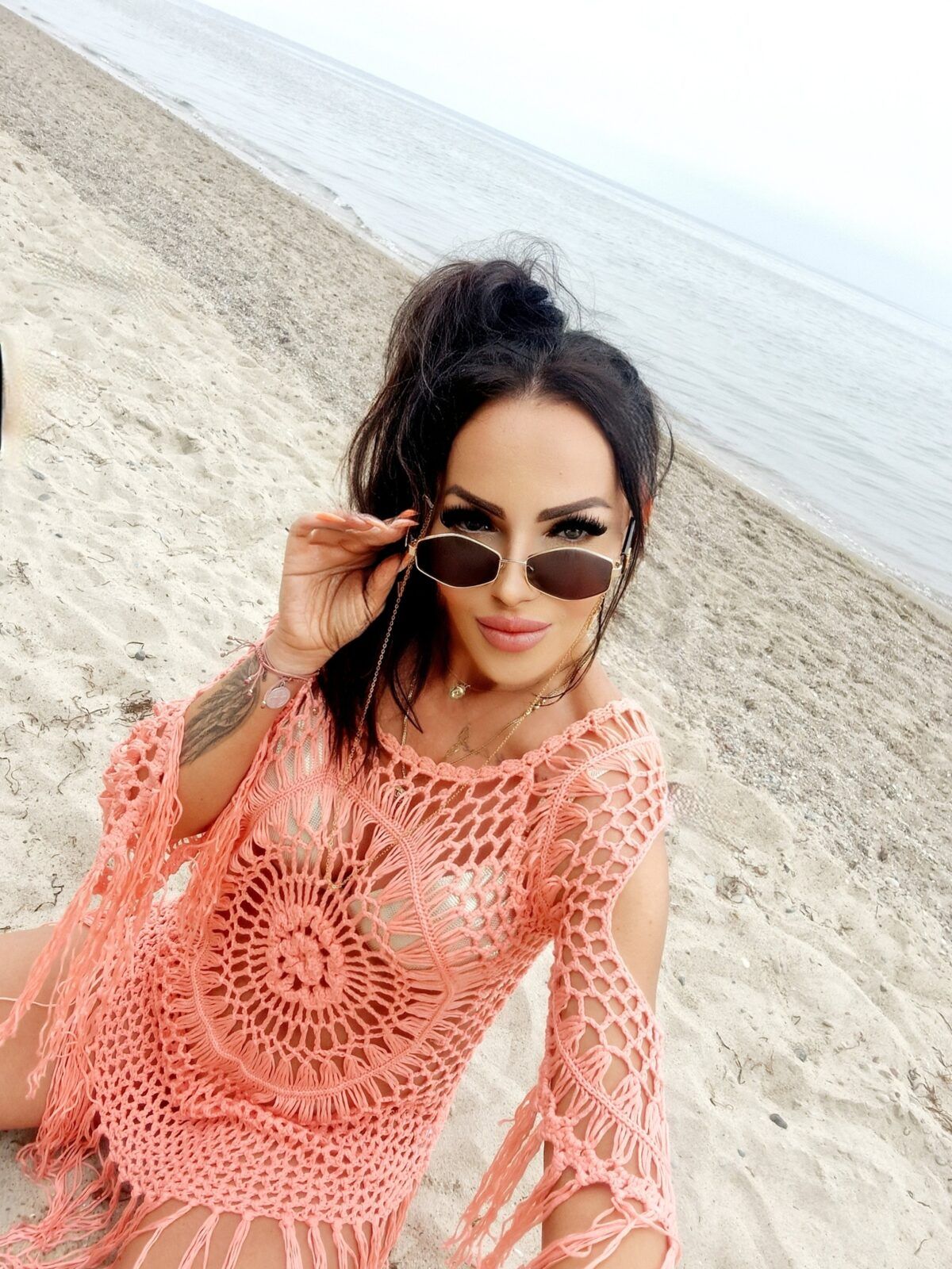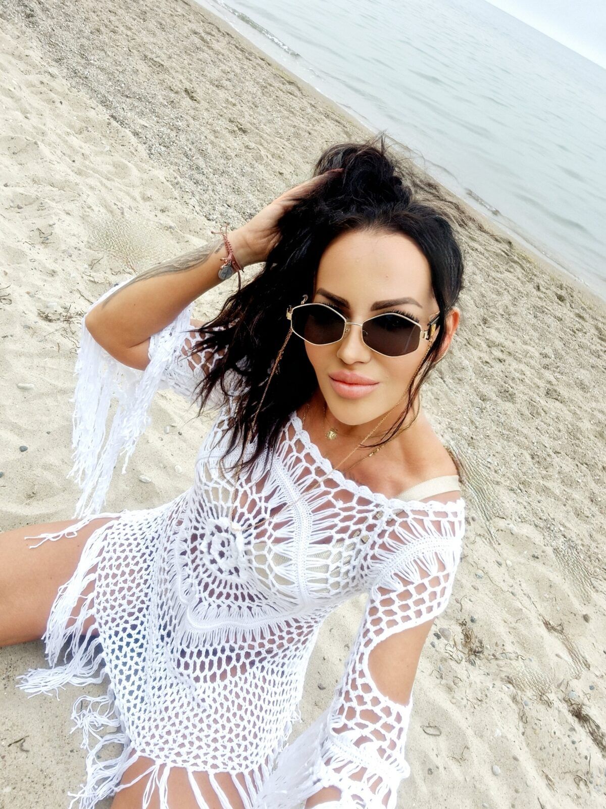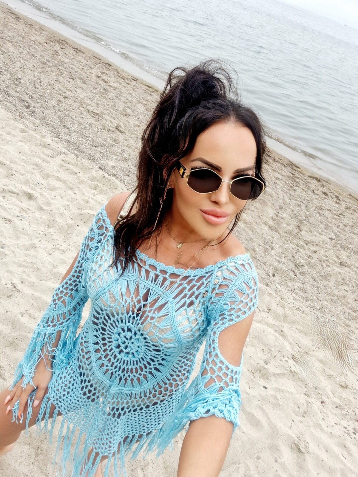 Ażurowa Narzuta Plażowa z Frędzlami