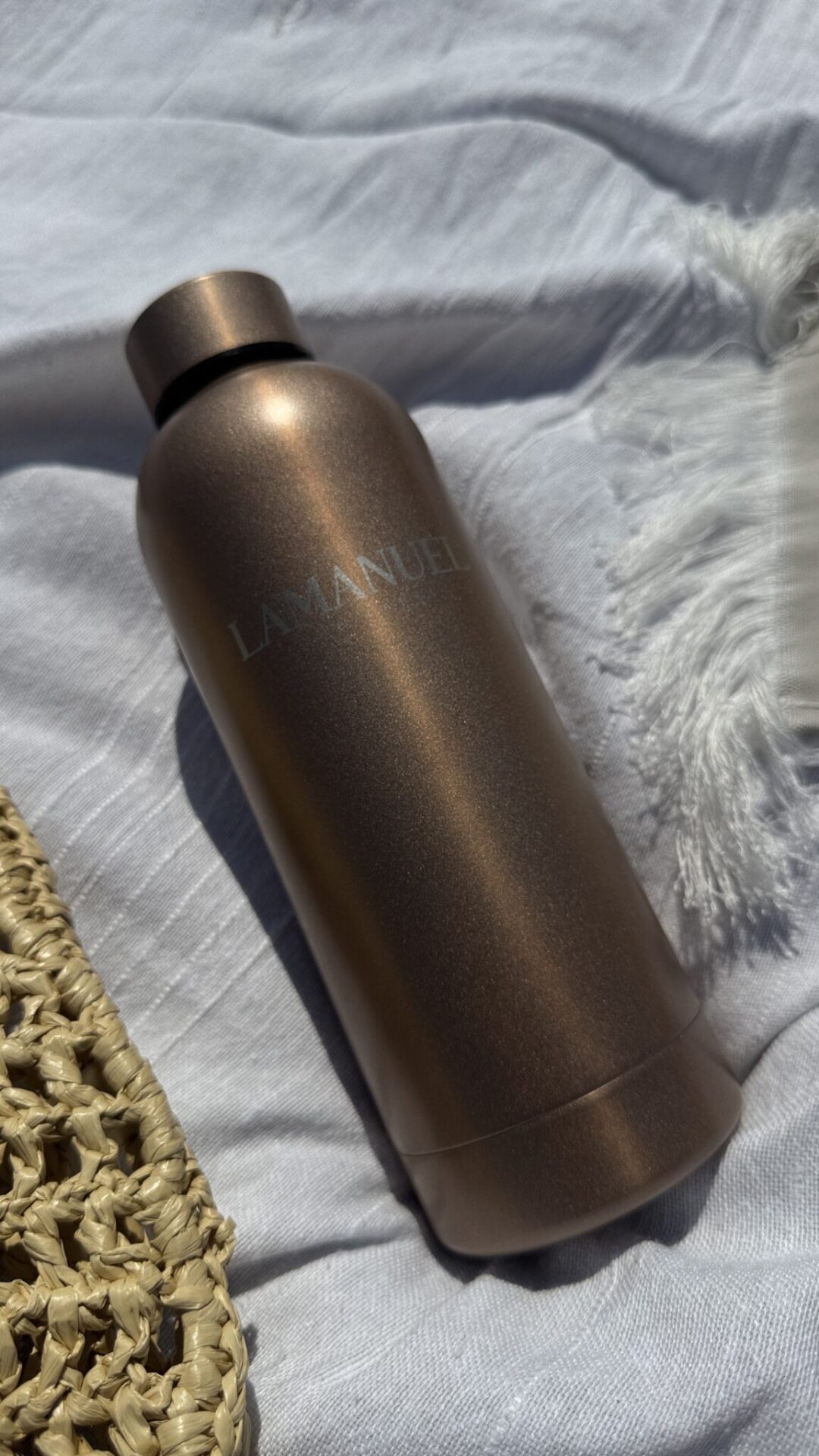 Minimalistyczna butelka z recyklingowanej stali nierdzewnej o pojemności 500 ml. Dwuścienna izolacja próżniowa chroni temperaturę napoju przez długie godziny.