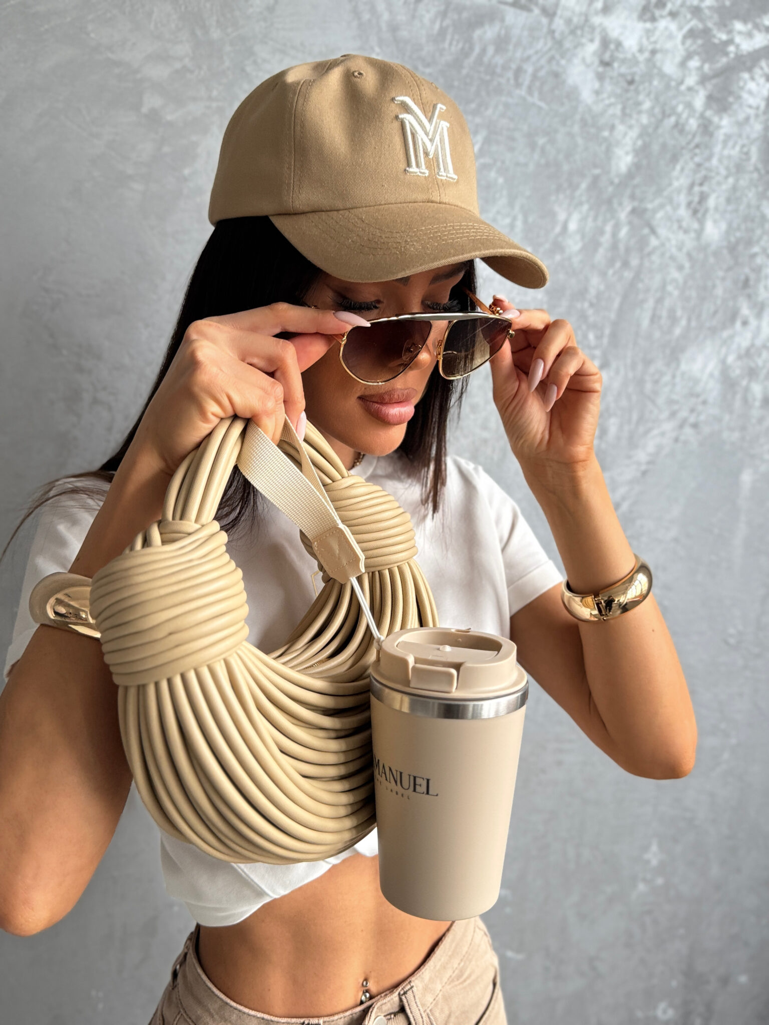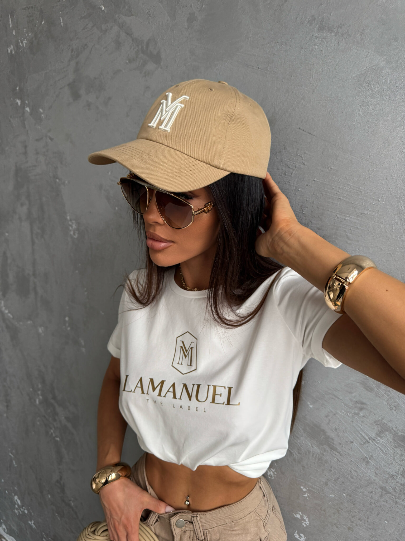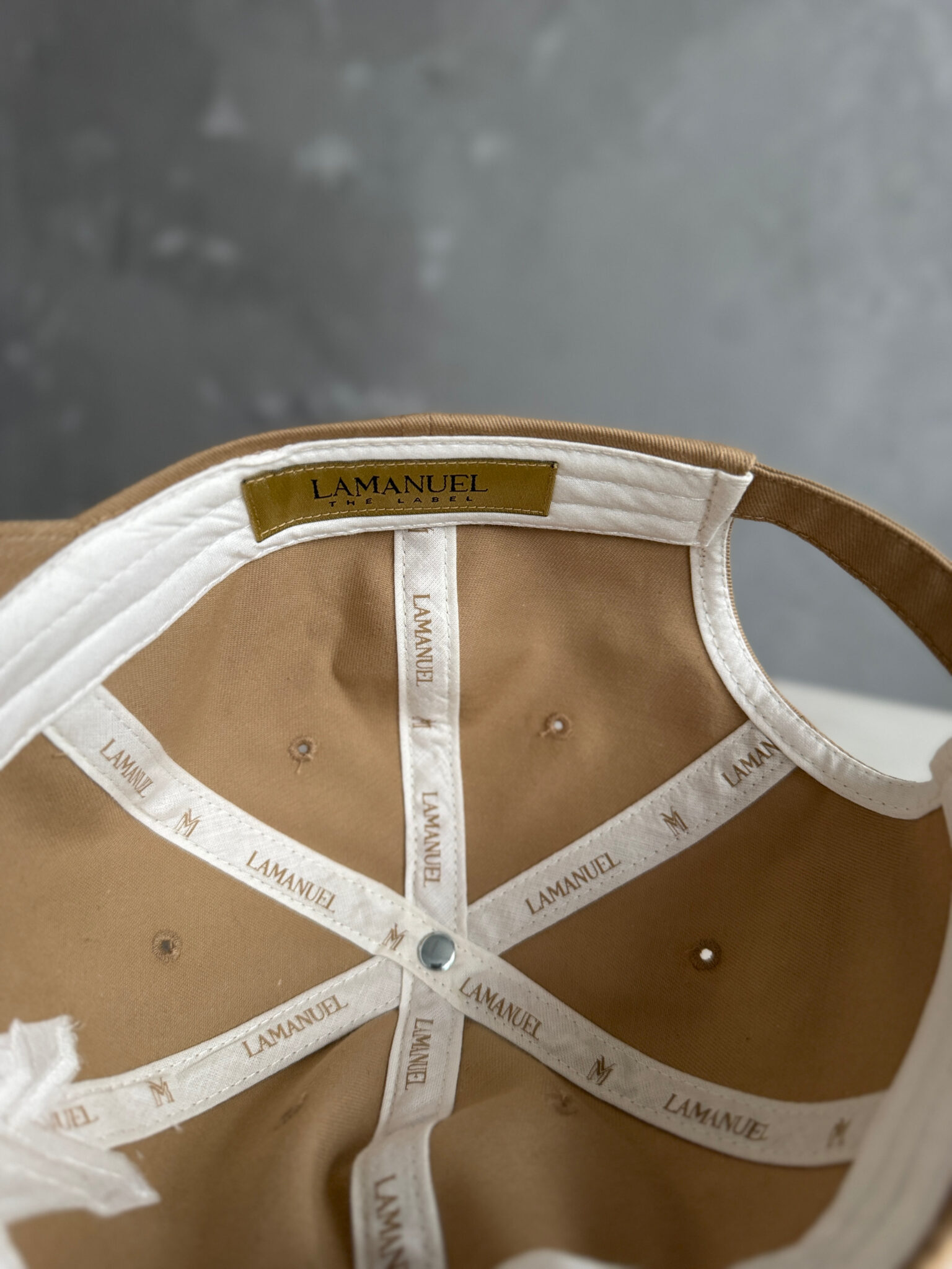 Czapka z daszkiem o klasycznym kroju, wykonana z wysokiej jakości bawełnianej tkaniny. Z przodu ozdobiona haftowanym logo w formie litery M, z tyłu regulowane zapięcie na metalową sprzączkę z wygrawerowanym detalem. Wnętrze wykończone taśmą z powtarzającym się logotypem marki LAMANUEL. Idealna jako stylowy dodatek do codziennych i sportowych stylizacji.