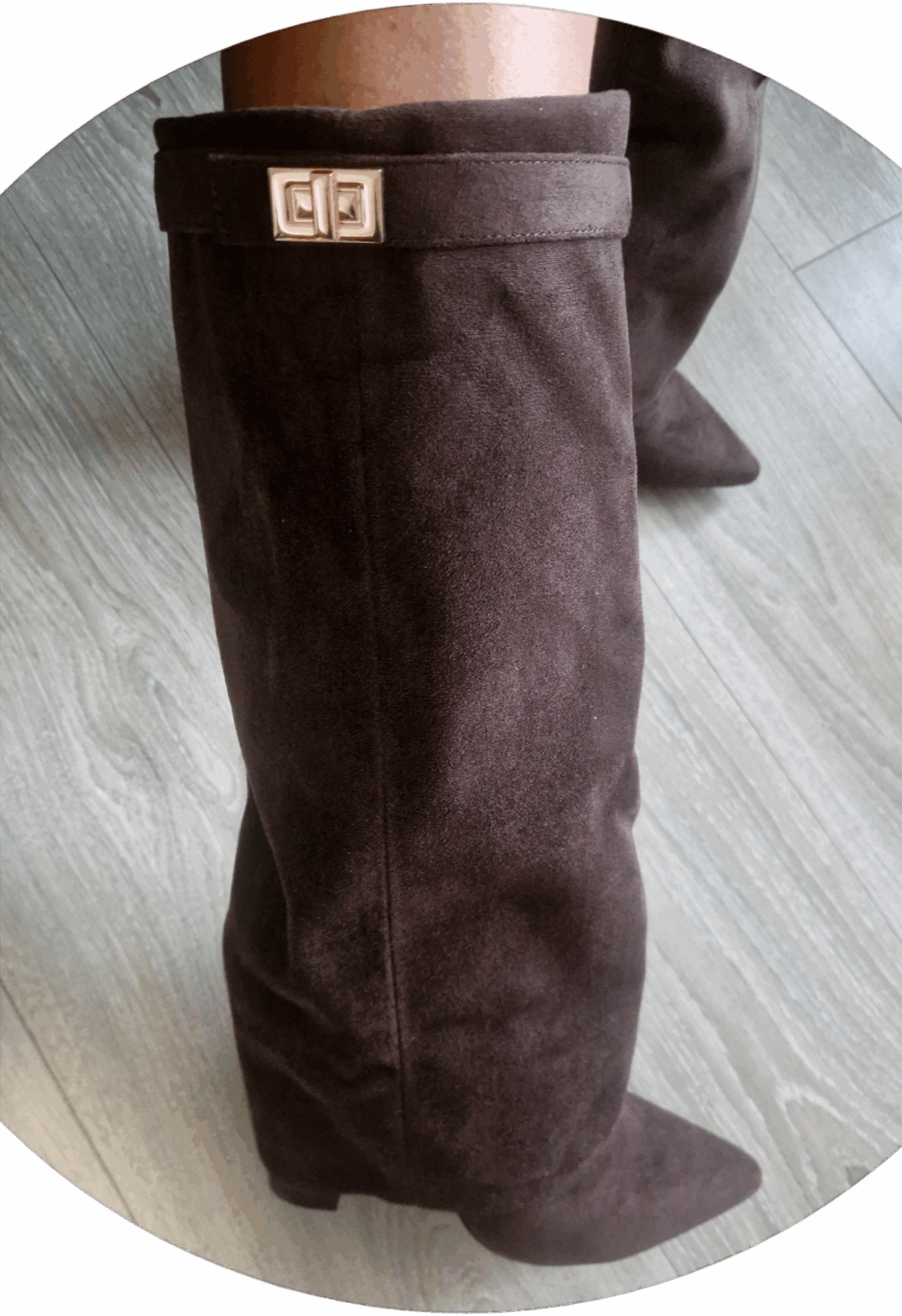 37 – długość wkładki 24,5 cm; wysokość buta 43 cm; wysokość obcasa 9 cm
