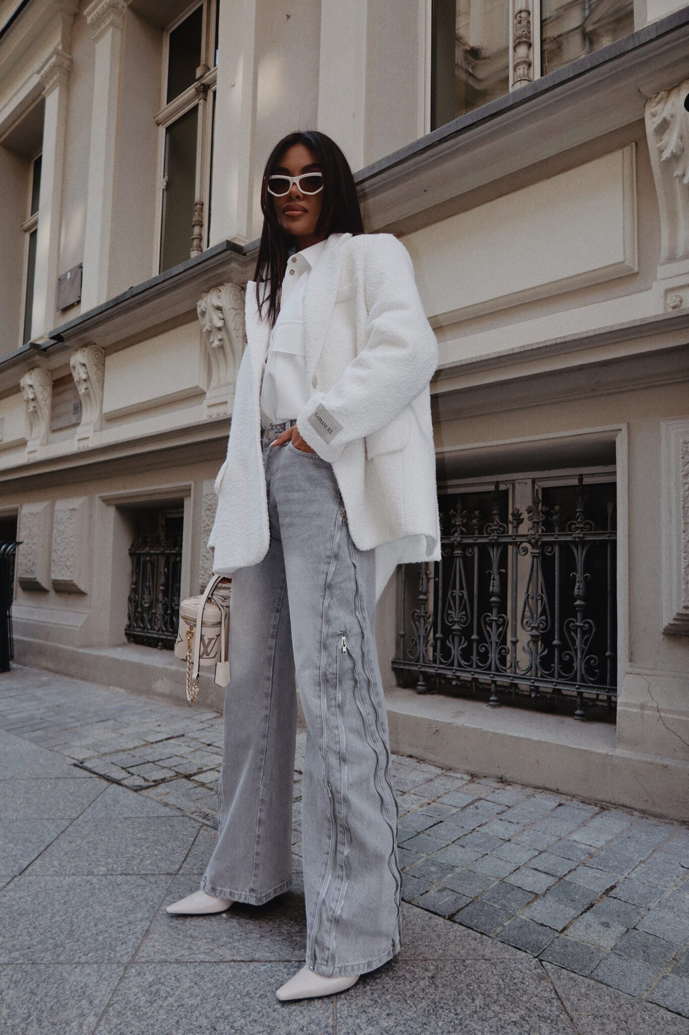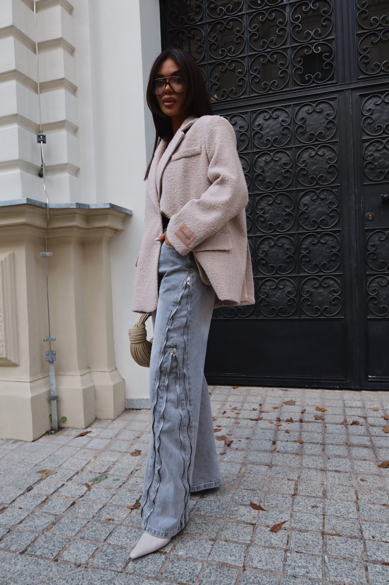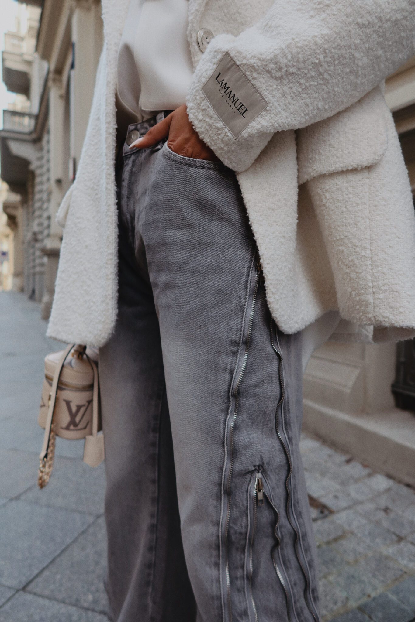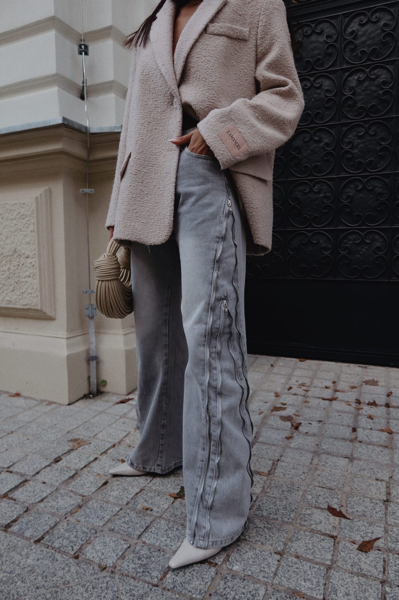 Jeansy, które nie potrzebują zbędnych dodatków, by robić wrażenie. Surowe przeszycia i suwakowe detale dodają im wyrazistości i bezkompromisowego klimatu. Nogawki są szerokie, ale dzięki suwakom możesz je dopasować do siebie – zwężając lub prostując w zależności od nastroju i stylówki. Klasyczny denim w nowoczesnym wydaniu, który gra tu pierwsze skrzypce. Noś je z marynarką, topem albo miękkim swetrem – wszystko zależy od Ciebie.Skład: 100% bawełna