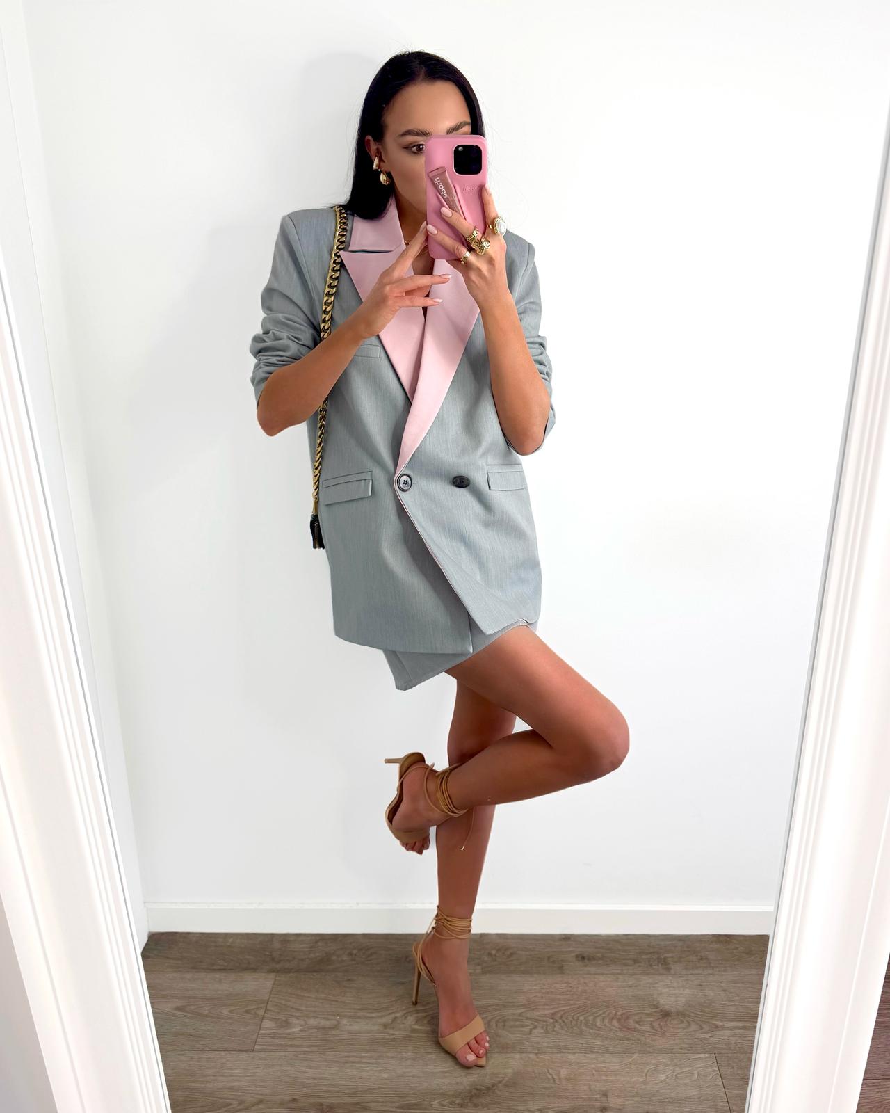 Klasyczna marynarka polskiego producenta La Milla to elegancki i kobiecy element, który powinien się znaleźć w każdej kobiecej garderobie. Wykonana z wysokiej jakości materiału. Charakteryzuje się kontrastującym różowym kołnierzem oraz wszytymi poduszkami w ramionach, które dodają jej kobiecości, jednocześnie podkreślając jej fason. Ta marynarka to doskonała propozycja dla kobiet poszukujących odzieży z najnowszych projektów. Zapinana na dwa dwurzędowe guziki. Połącz ją ze spódniczką i stwórz piękny zestaw. Polski producent, jakość premium. Skład: 95% Wiskoza; 5% elastan.