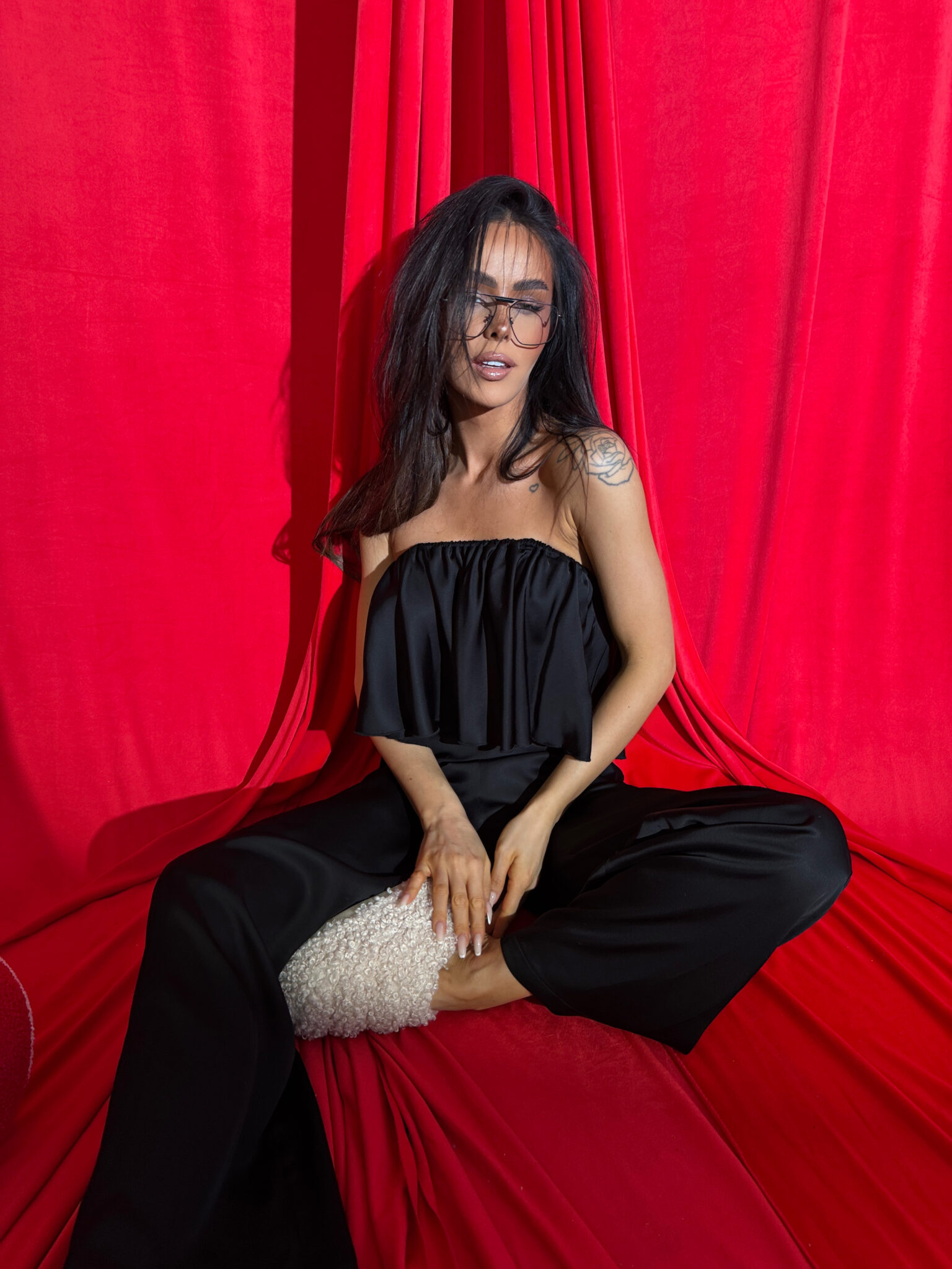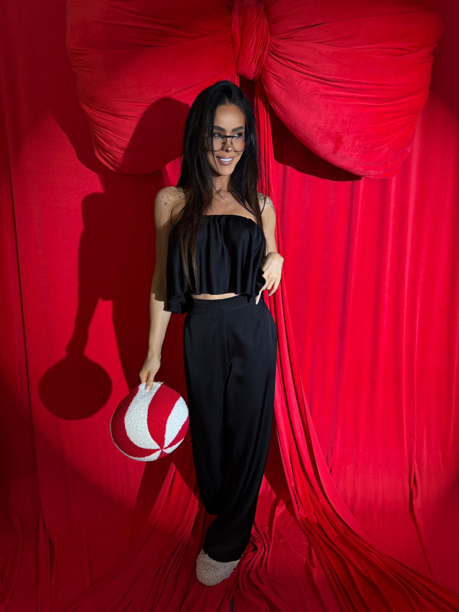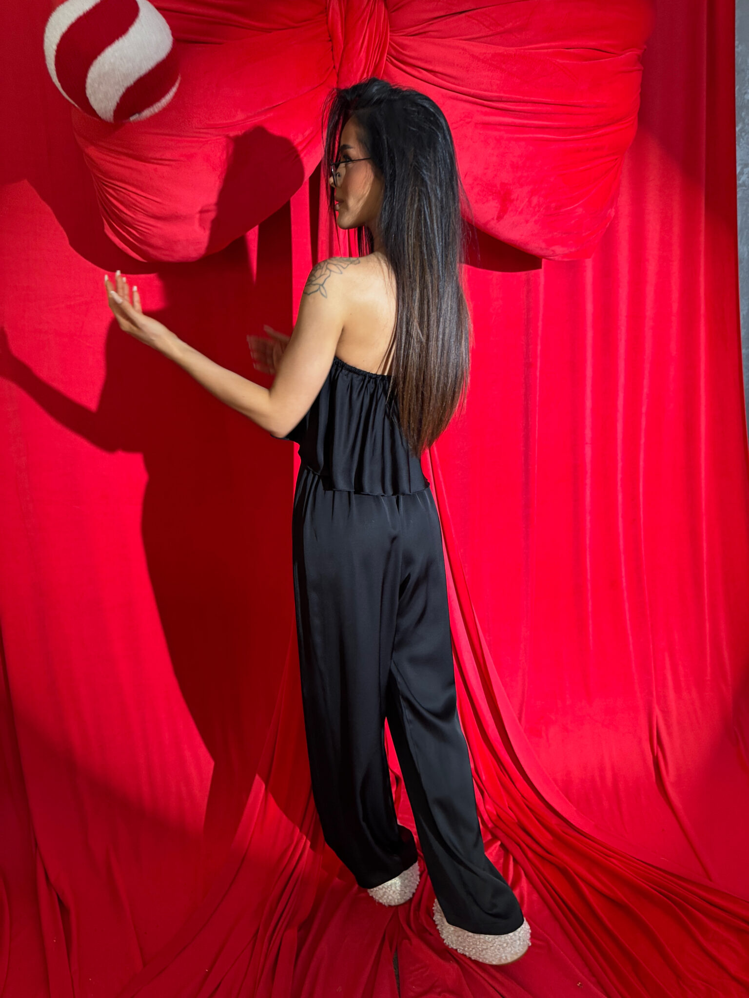 Ten komplet to kwintesencja luksusu w domowej odsłonie. Wykonany z naturalnej wiskozy o satynowym wykończeniu, zachwyca miękkością, subtelnym połyskiem i eleganckim ruchem tkaniny przy każdym kroku. Top bez ramiączek z falbaną delikatnie podkreśla ramiona, a szerokie spodnie z wysokim stanem i efektownym marszczeniem z tyłu pięknie układają się na sylwetce – zwłaszcza na biodrach i pośladkach.To nie tylko komplet do domu. To styl, który możesz śmiało zabrać na wieczór, do hotelu, na prezent. Klasa, jakość i dopracowany detal – dokładnie tak, jak definiuje to LAMANUEL.Skład: 100% wiskoza satyna