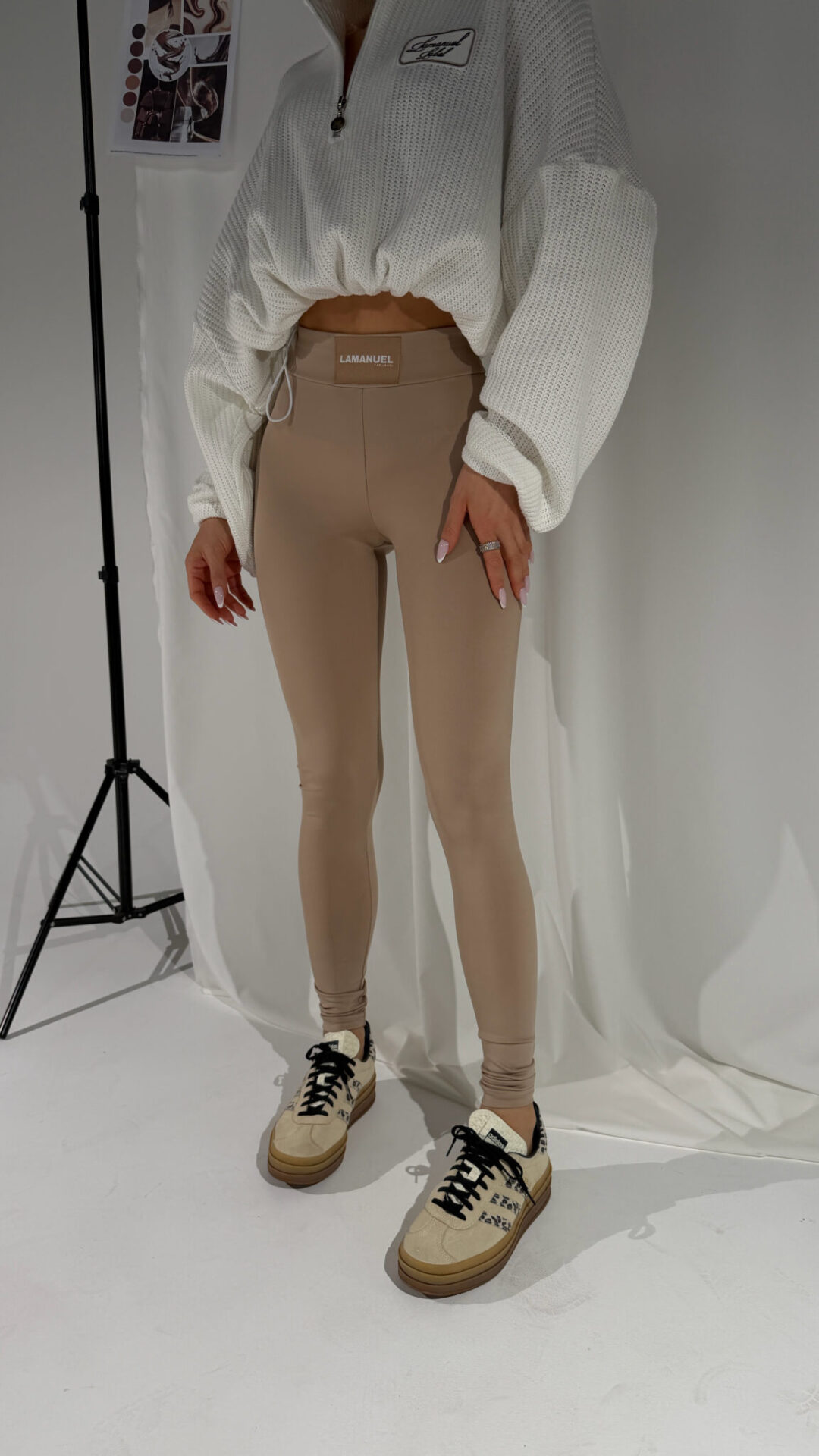 Legginsy, które realnie zmieniają proporcje sylwetki – bez filtrów, bez ściemy. Mocna, elastyczna lycra z delikatnym połyskiem gładko opina ciało i daje efekt wysmuklenia, który widać od razu. Marszczenie na pośladkach podnosi je optycznie i modeluje krągłości tak, że każda klientka poczuje się jak milion dolarów. Wysoki stan zbiera talię, nie zjeżdża, nie roluje się, a elastyczny pas z logo lamanuel dopełnia całość estetycznie. Komfort noszenia 10/10, ale przy tym totalny efekt wow.Skład: 78% nylon 22% spandex