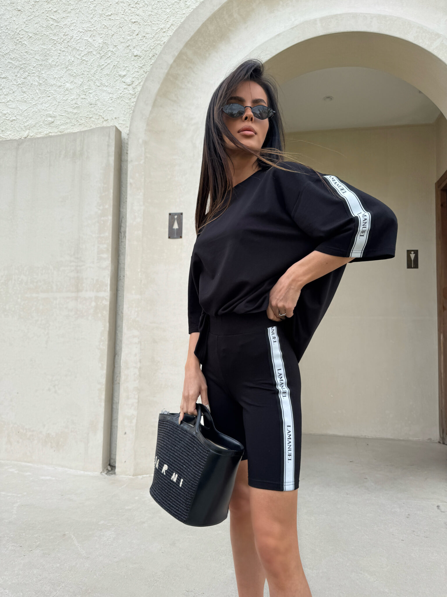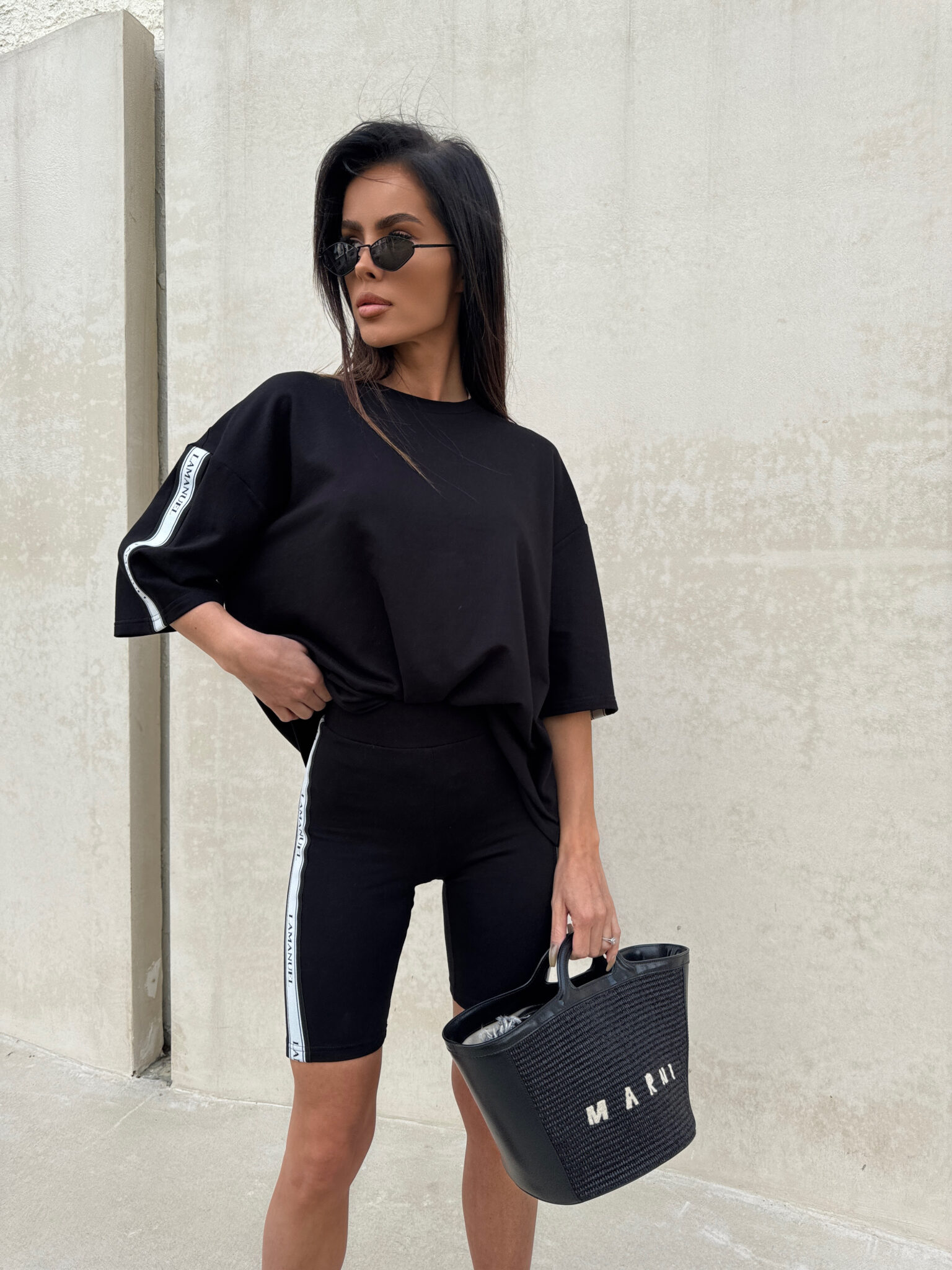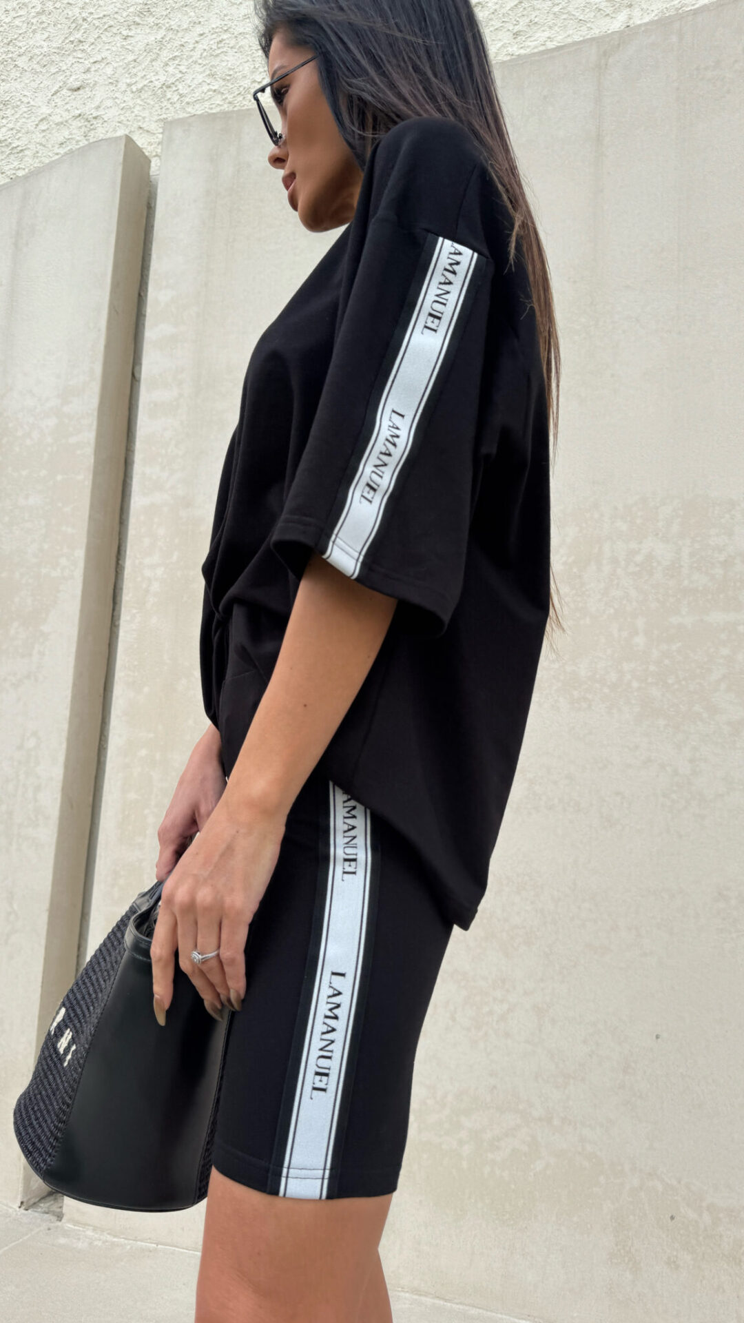 Kolarki z elastycznej, miękkiej bawełny o dopasowanym kroju, idealnie przylegające do sylwetki. Model wyposażony w szeroką, komfortową gumę w pasie, zapewniającą dobre podtrzymanie i wygodę noszenia. Po bokach nogawek wszyto taśmy z logotypem LAMANUEL, które nadają całości sportowego, ale stylowego charakteru. Świetna baza do codziennych i aktywnych stylizacji.Skład: 95% bawełna 5% elastan