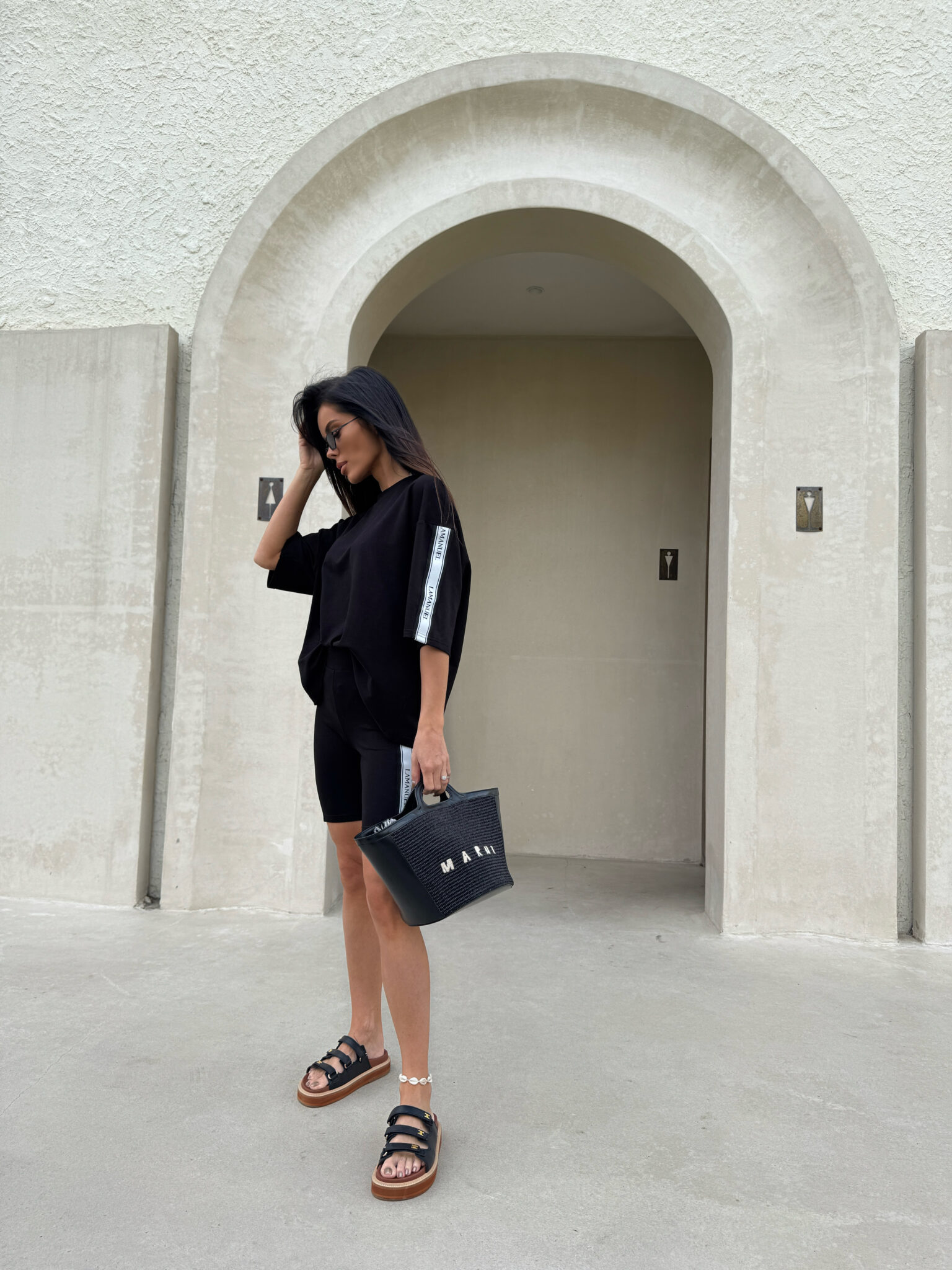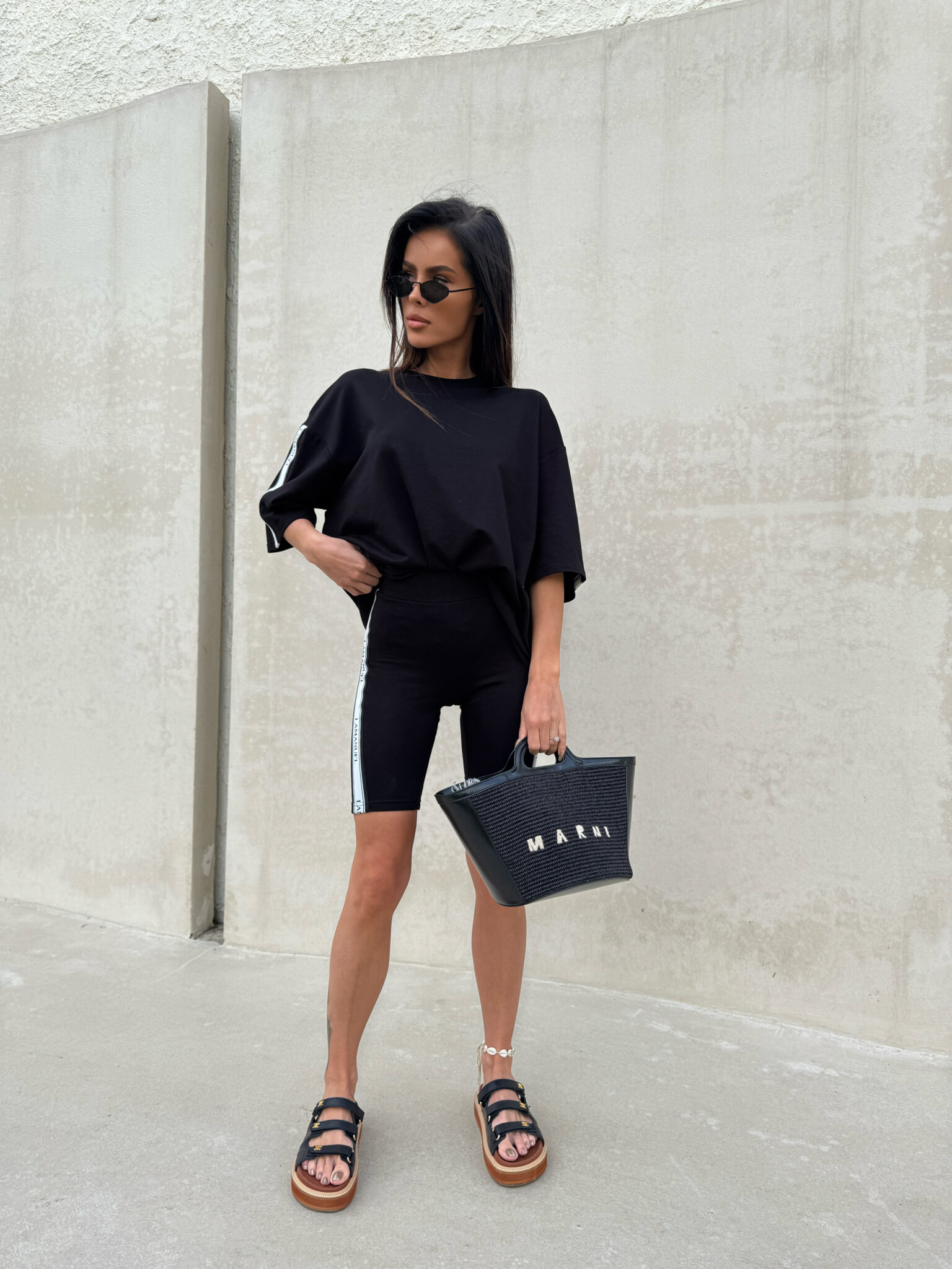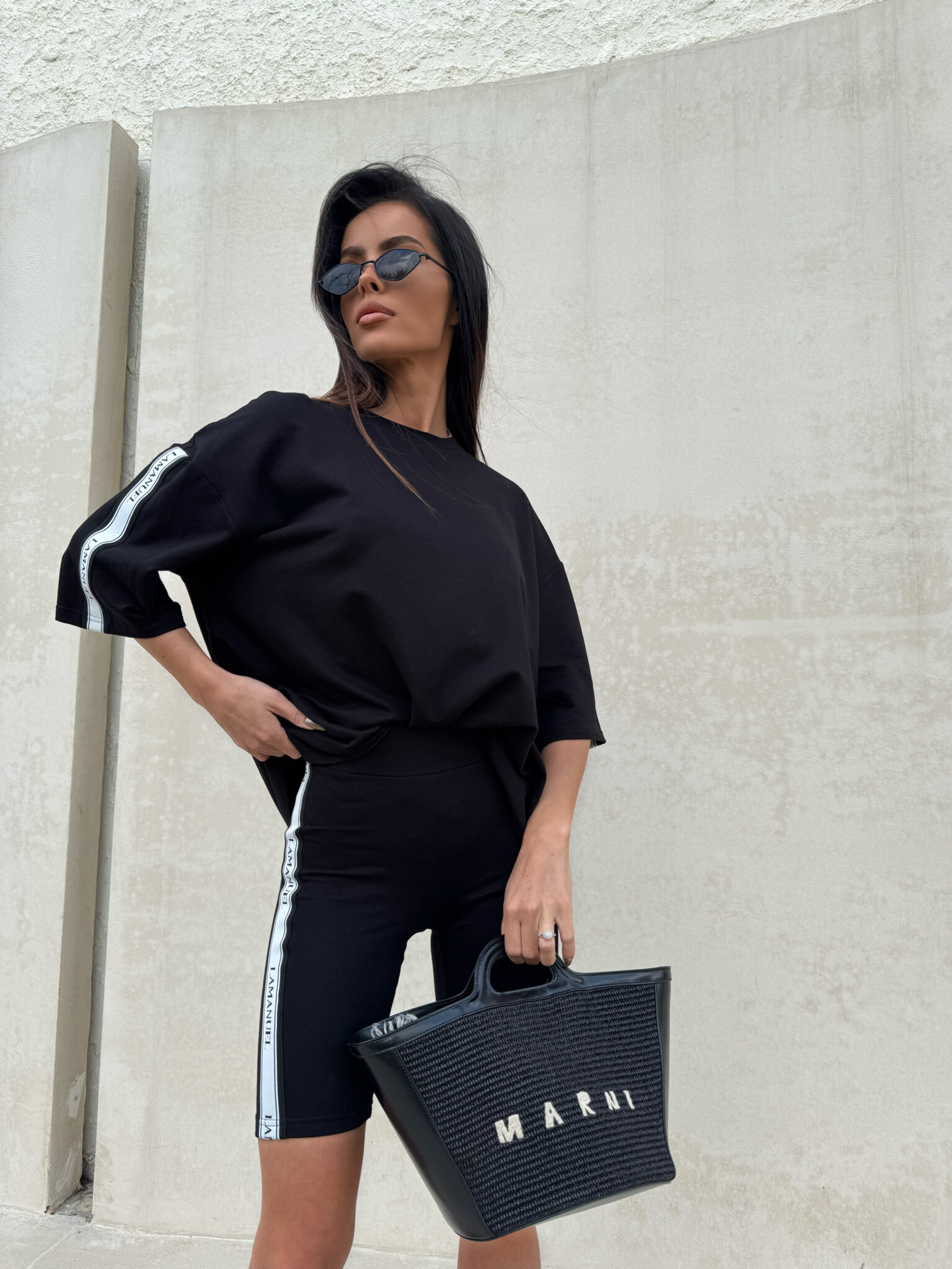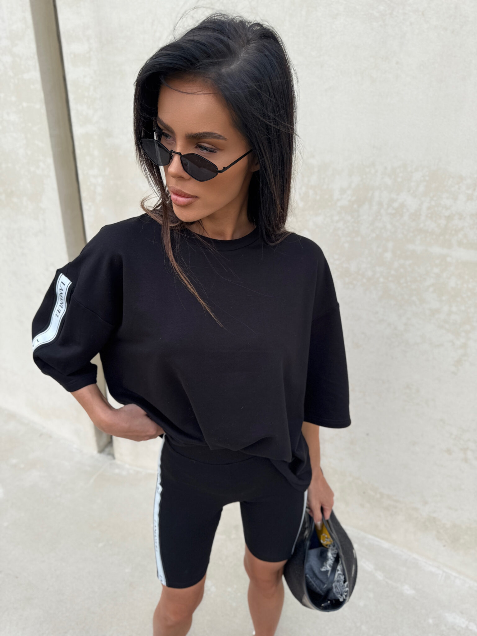 Kolarki z elastycznej, miękkiej bawełny o dopasowanym kroju, idealnie przylegające do sylwetki. Model wyposażony w szeroką, komfortową gumę w pasie, zapewniającą dobre podtrzymanie i wygodę noszenia. Po bokach nogawek wszyto taśmy z logotypem LAMANUEL, które nadają całości sportowego, ale stylowego charakteru. Świetna baza do codziennych i aktywnych stylizacji.Skład: 95% bawełna 5% elastan