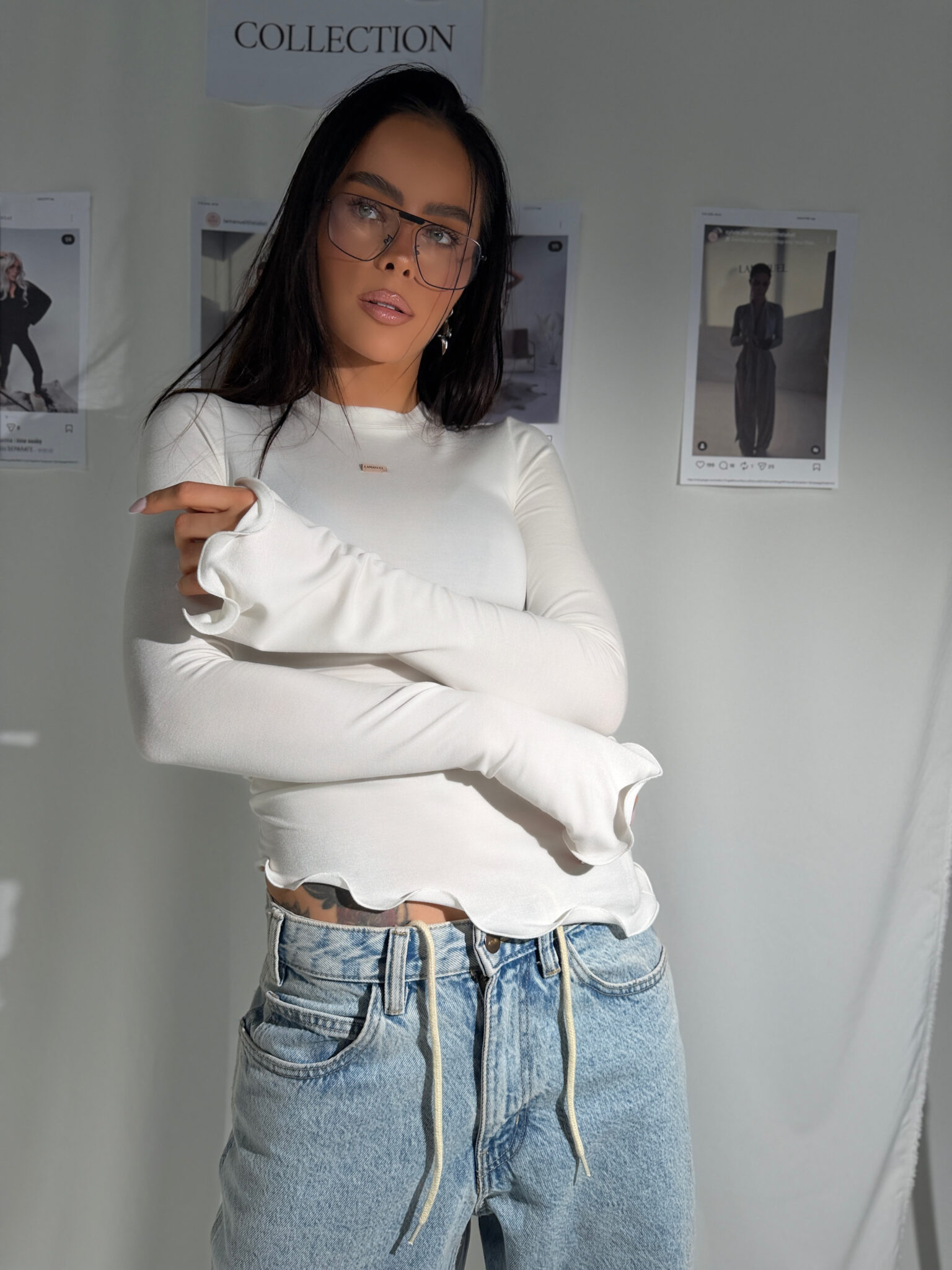 Top, który wygląda niepozornie, ale robi stylizację. Dopasowany fason z miękkiej, lejącej dzianiny, która otula sylwetkę bez oporu. Falowane wykończenie nadaje mu lekkości i dziewczęcego pazura – działa zarówno na gołe ciało, jak i jako baza pod marynarkę. Długi rękaw z przedłużeniem, który lekko nachodzi na dłoń, dodaje mu nonszalancji w stylu old Céline. Minimalistyczna metka lamanuel na środku to subtelne nawiązanie do estetyki premium. Ten model potrafi wyglądać ultra codziennie, ale też zaskoczyć wieczorem. W hurtowej ofercie to punkt obowiązkowy – bo każda klientka potrzebuje chociaż jednego takiego topu w swojej szafie.Skład: 95% wiskoza 5% elastan
